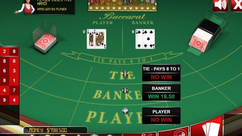 Baccarat so điểm giữa hai cửa: Player và Banker. Bạn không “đánh bài” như Poker, mà chỉ dự đoán cửa nào có tổng điểm gần 9 hơn. Có 3 lựa chọn cược cơ bản: